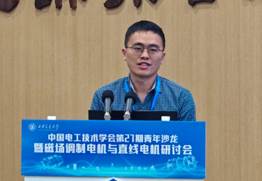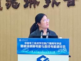 在学术报告环节,哈尔滨工业大学白金刚教授、南京理工大学耿伟伟副教授、郑州轻工业大学刘小梅讲师分别就圆筒型直线电机系统、高功率密度轴向磁通永磁电机、复合初级永磁同步直线电机推力波动抑制等关键技术分享了最新研究进展。来自华中科技大学、山东科技大学、四川大学、江苏大学及西安交通大学的青年学者周游助理研究员、陈红讲师、王学庆副研究员、徐亮副教授、梁阳助理教授,依次报告了各自在增材制造应用、高转矩密度磁场调制电机设计、多功率通道控制、谐波损耗抑制、高速电机控制等方向的研究成果。