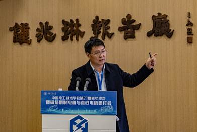 在特邀报告环节,电机领域著名专家、合肥工业大学赵吉文教授作特邀报告,系统阐述了科学问题挖掘与国家自然科学基金项目申请的方法论,为青年学者的科研规划提供了宝贵指导。