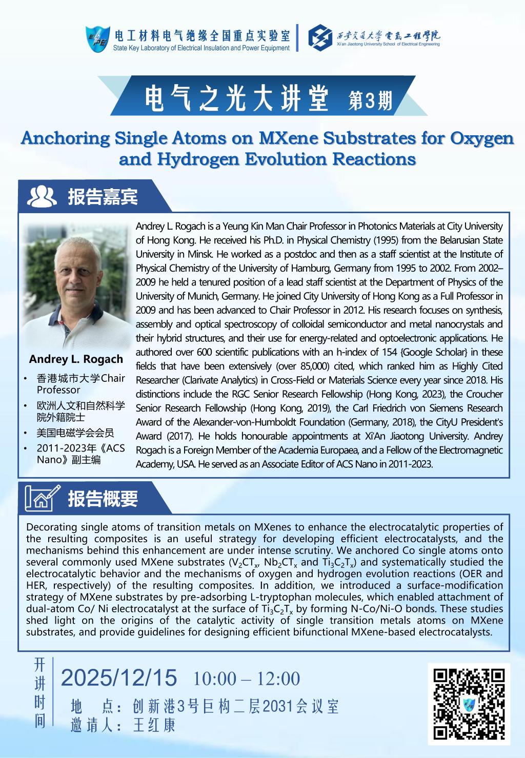 "电气之光大讲堂"第三期:Andrey Rogach教授学术报告通知