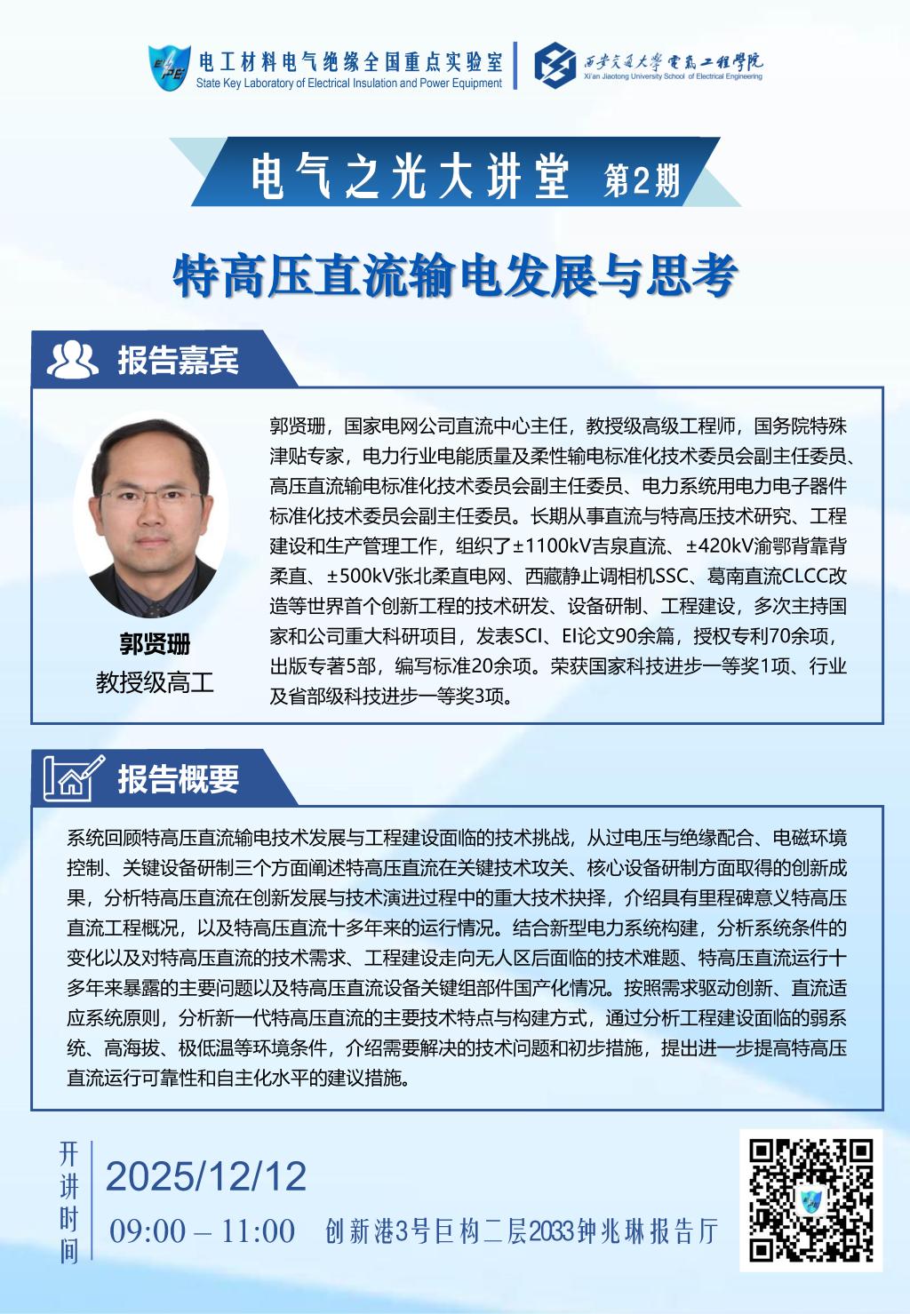 "电气之光大讲堂"第二期:特高压直流输电发展与思考