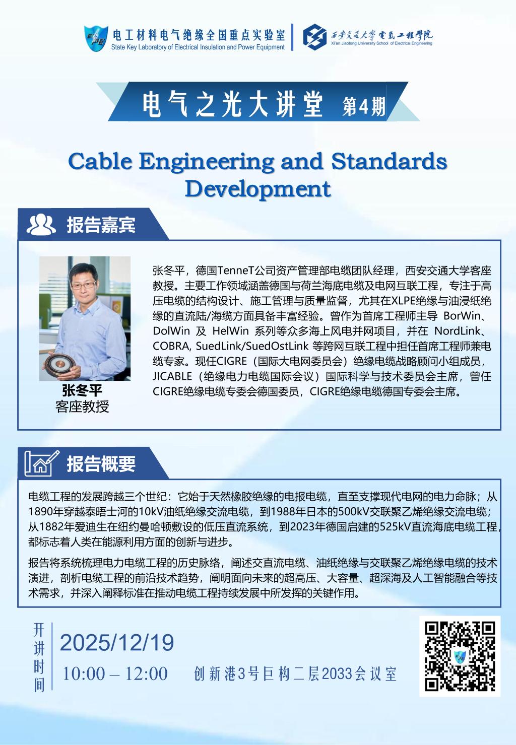 "电气之光大讲堂"第四期:Cable Engineering and Standards Development