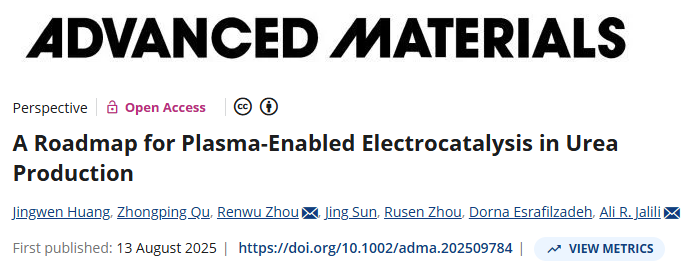 近日,电工材料电气绝缘全国重点实验室周仁武教授团队在绿色氮化学与电化学合成领域取得重要研究进展。相关研究成果以《等离子体辅助尿素生产电催化路线图》(A Roadmap for Plasma-Enabled Electrocatalysis in Urea Production)为题,发表于国际顶级材料学期刊Advanced Materials。论文围绕绿色尿素合成中的等离子体能量效率、碳—氮耦合选择性与尿素精准检测、等离子体—电解槽系统集成以及界面质量传输与反应微环境调控等关键问题,系统总结了等离子体—电催化协同合成尿素的核心机理、设计策略与代表性技术路线,旨在为构建高效、可规模化且可与可再生能源深度耦合的低温常压绿色尿素合成体系提供系统化设计框架与实践指南。