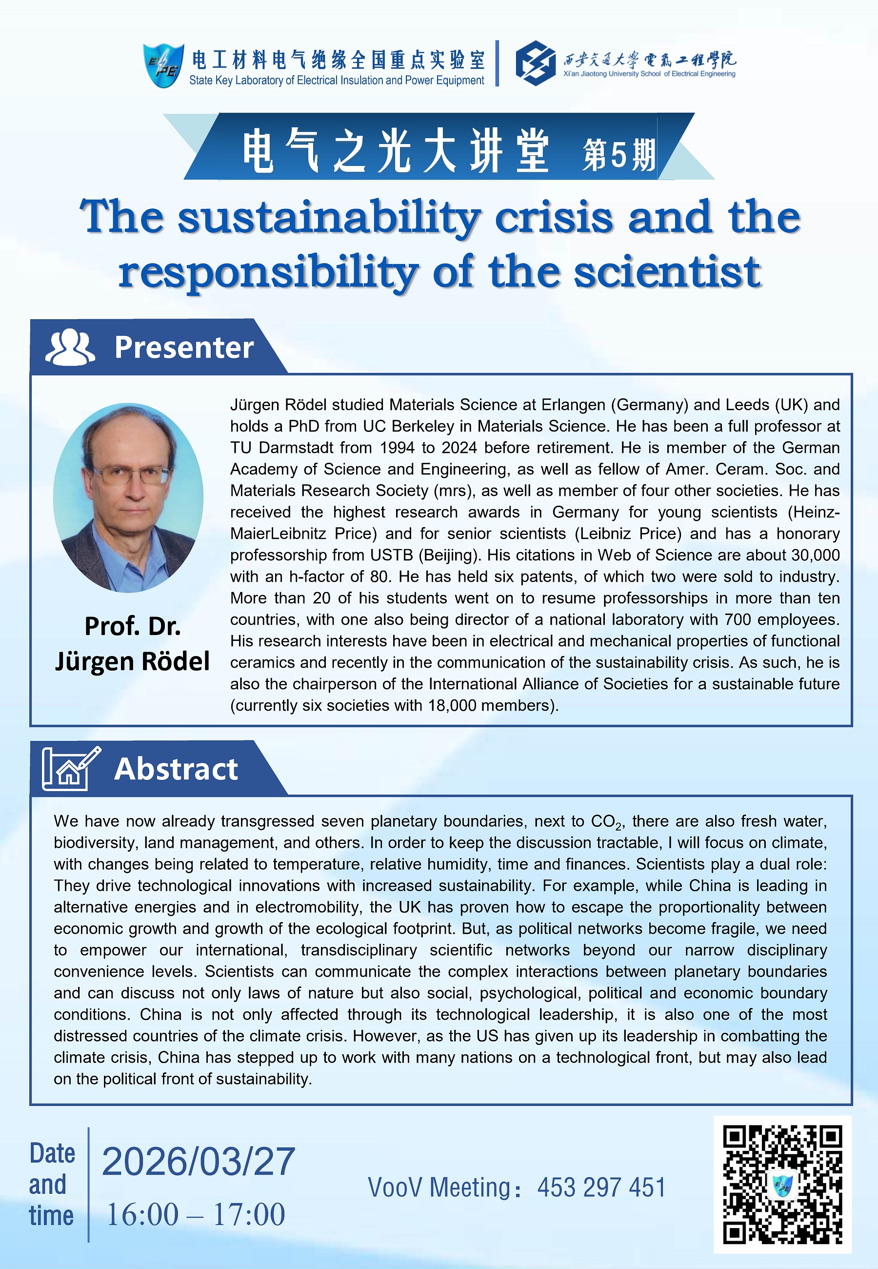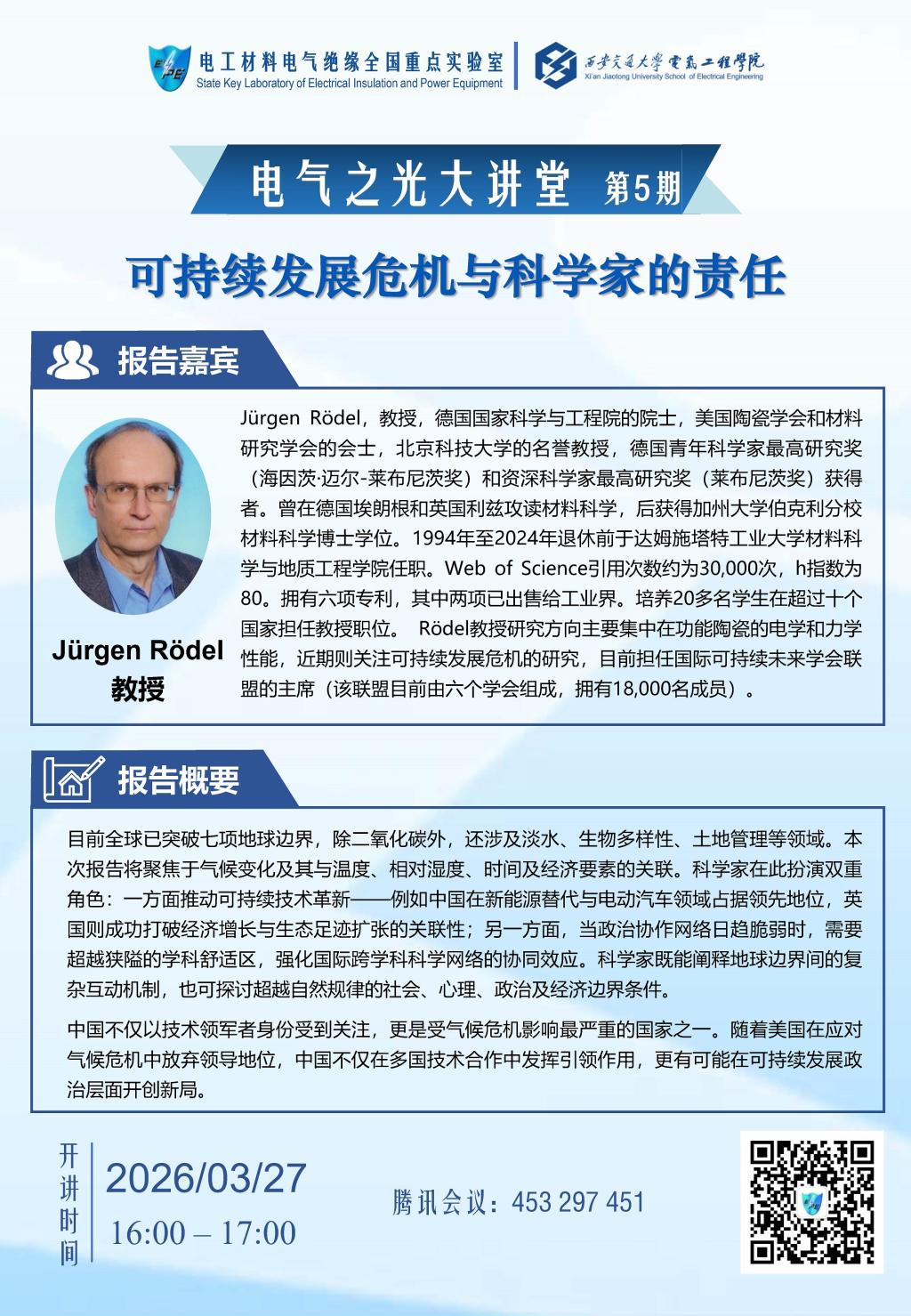"电气之光大讲堂"第五期:可持续发展危机与科学家的责任