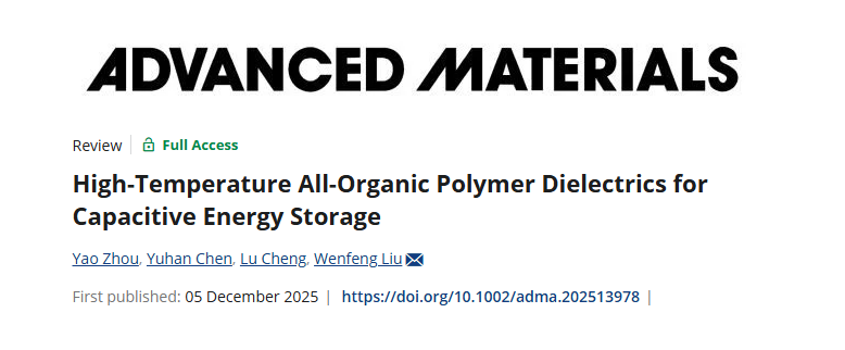 近日,西安交通大学电气工程学院、电工材料电气绝缘全国重点实验室刘文凤教授团队应《先进材料》(Advanced Materials)期刊邀请,发表了题为《用于高温电容储能的全有机聚合物电介质》(High-temperature all-organic polymer dielectrics for capacitive energy storage)的综述论文。该论文系统梳理并评述了全有机聚合物高温储能电介质领域的最新研究进展。