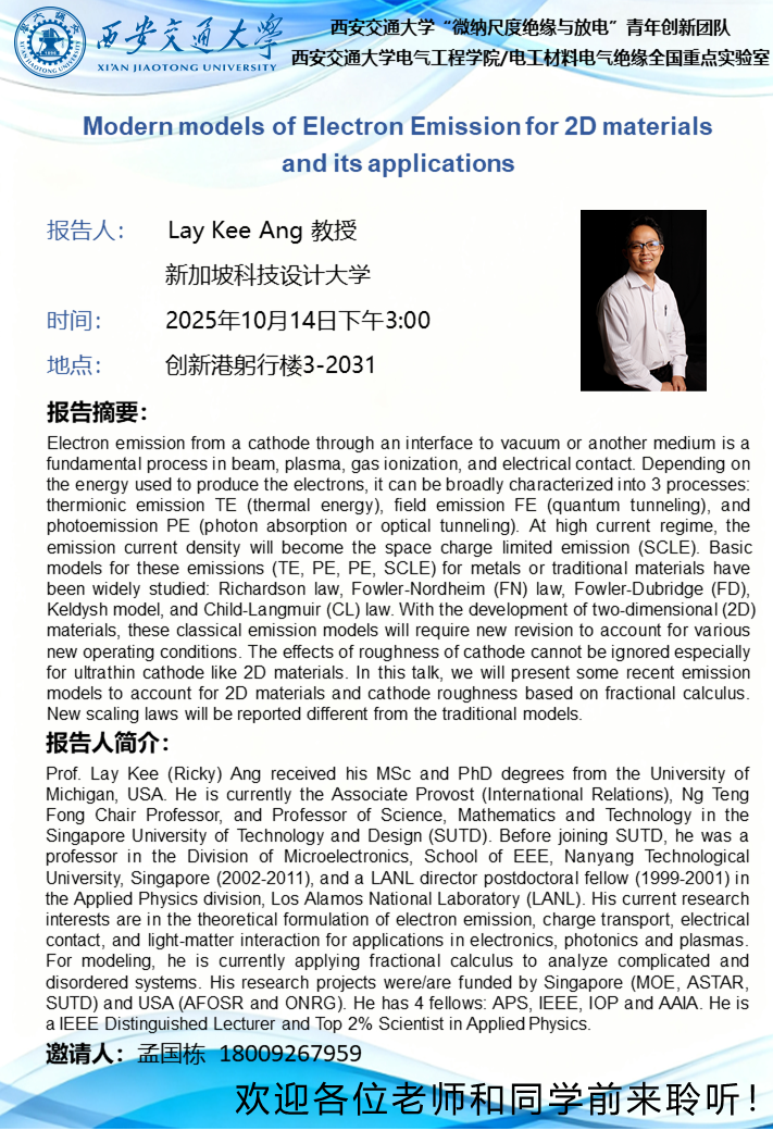 新加坡科技设计大学Lay Kee Ang教授学术报告通知